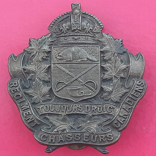 (Canada) Les Chasseurs Canadiens – King’s Crown Blackened Brass Cap Badge.