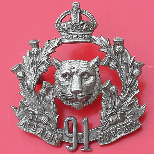 (Canada) The 91st Highlanders – White Metal Cap Badge.