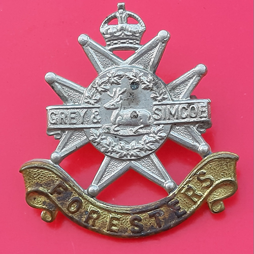 (Canada) The Grey & Simcoe Foresters – King’s Crown Bi-Metal Cap Badge.