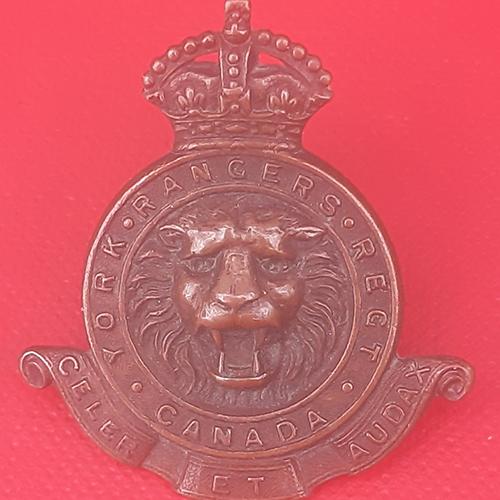 (Canada) The York Rangers – King’s Crown Blackened Brass Collar Badge.