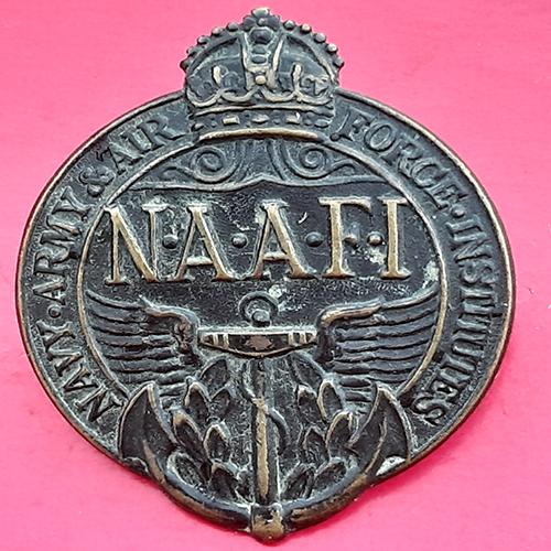 Navy, Army & Air Force Institution (N.A.A.F.I) – Unvoided Bronzed Cap Badge.