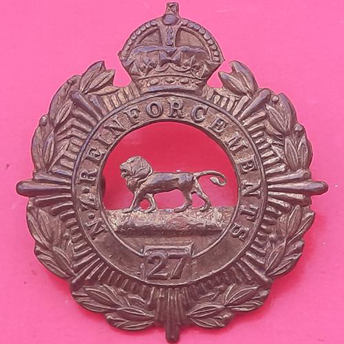 (New Zealand) 27th Reinforcements – WW1 King’s Crown Gilding Metal Cap Badge.