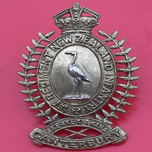 (New Zealand) The 1st Canterbury Regiment – King’s Crown Bi-Metal Cap Badge.
