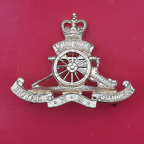 (New Zealand) The Royal New Zealand Artillery – Queen’s Crown Gilding Metal Beret Badge.