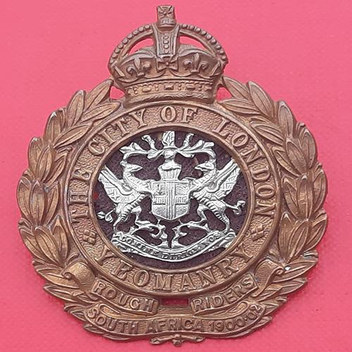 The City Of London Yeomanry – King’s Crown Bi Metal Cap Badge.
