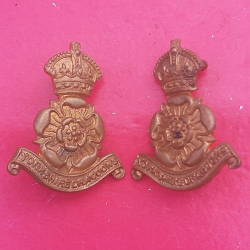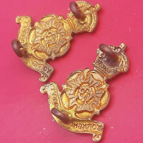 The Queen’s Own Yorkshire Dragoons – King’ Crown Gilding Metal Collar Badges.