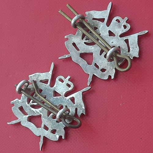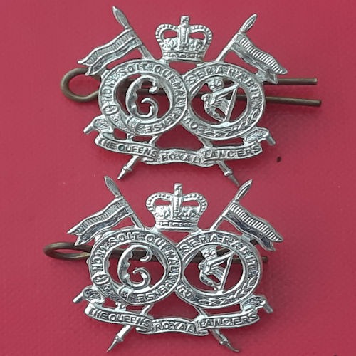 The Queen’s Royal Lancers – Queen’s Crown Officer’s Silver Plate Collar Badges.