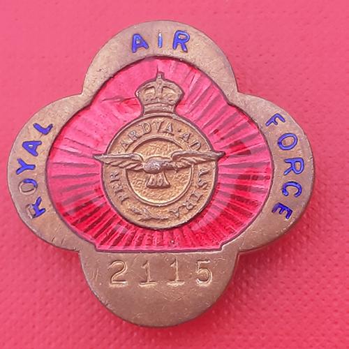 The Royal Air Force – King’s Crown Brass & Enamelled Button Hole Badge.